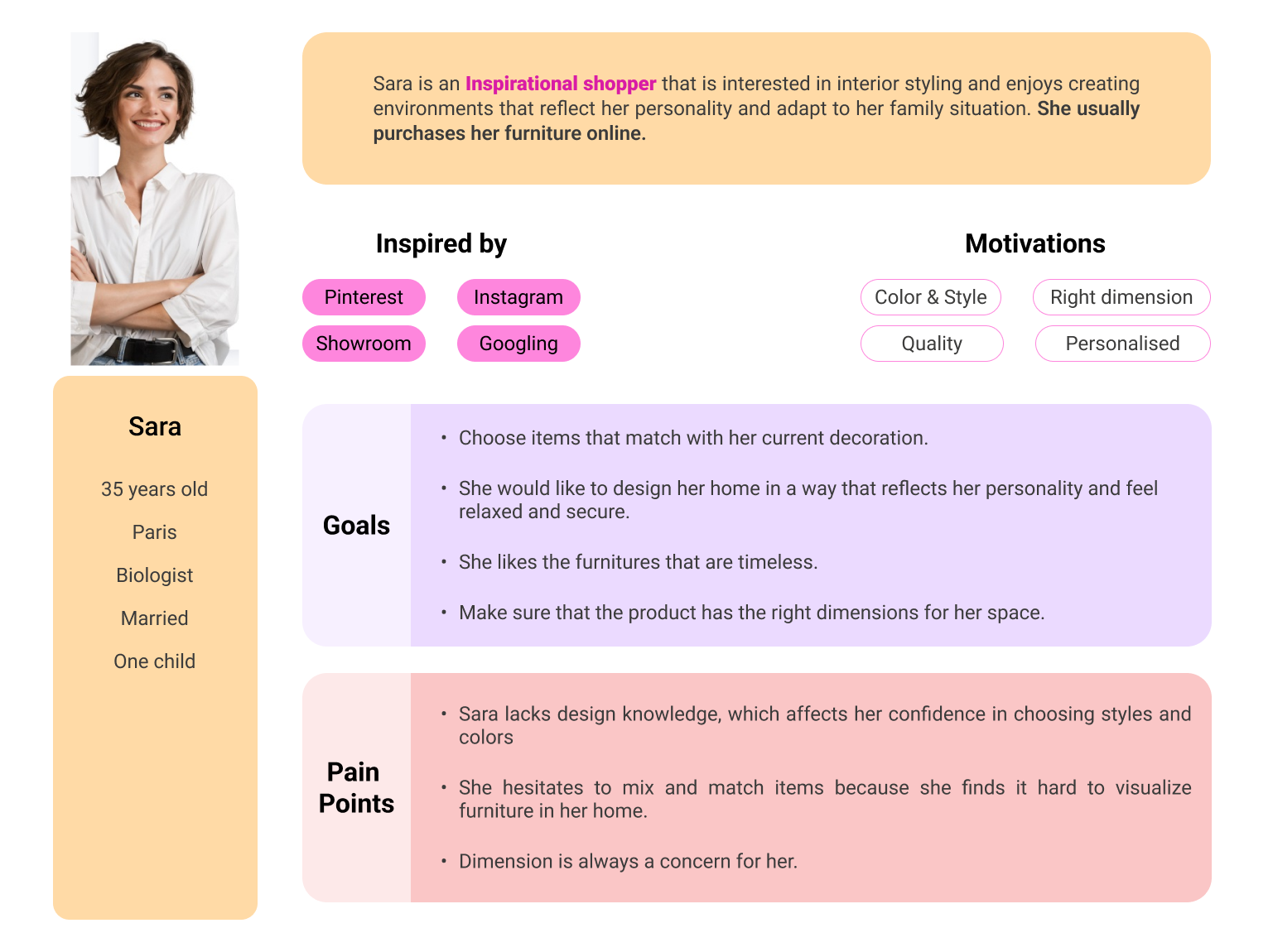Sara is an Inspirational shopper, her behaviour is similar to what we expect from our users who will spend more time finding inspiration and confirmation of their choices.